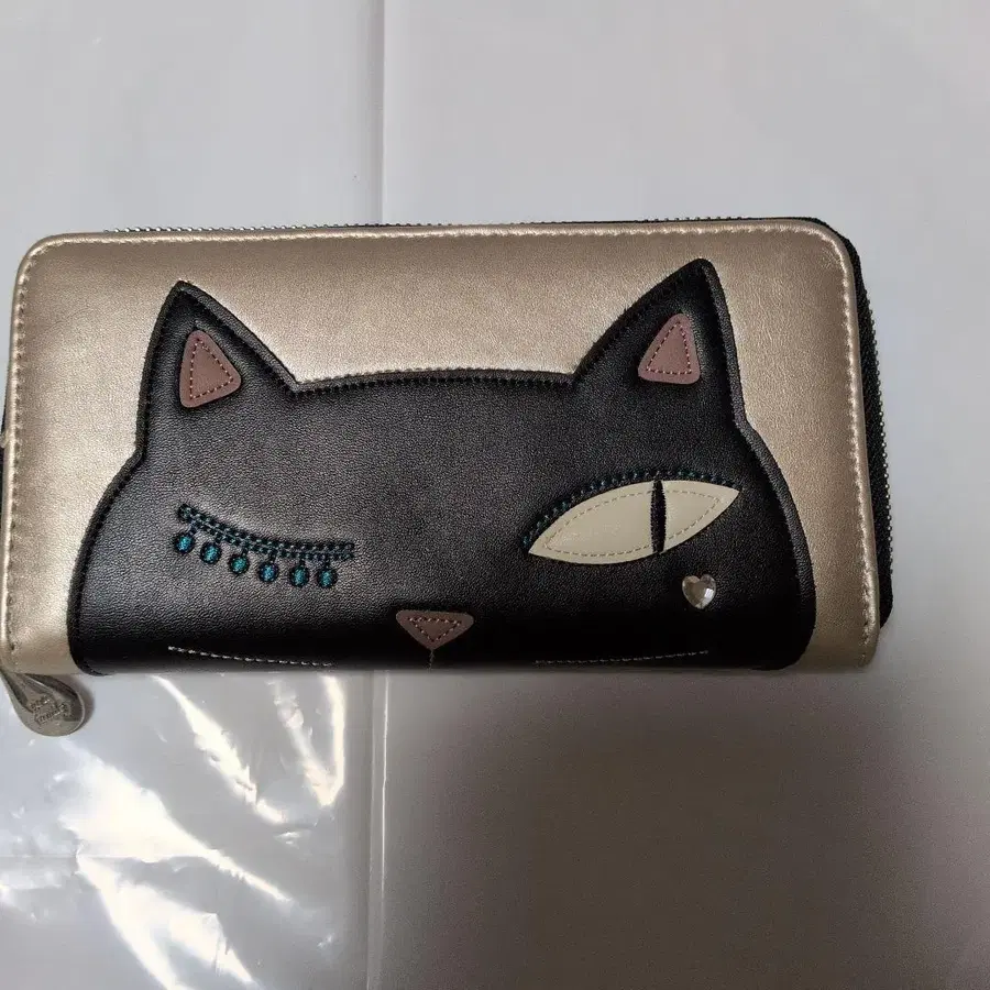 고양이 얼굴 디자인의 장지갑, 합성 피혁 소재에 비쥬 장식이 있습니다. - 디자인: 고양이 얼굴 디자인 - 컬러: 블랙과 골드 컬러 - 소재: 합성 피혁 - 장식: 비쥬 장식 - 스타일: 패션 소품 방문해 주셔서 감사합니다.