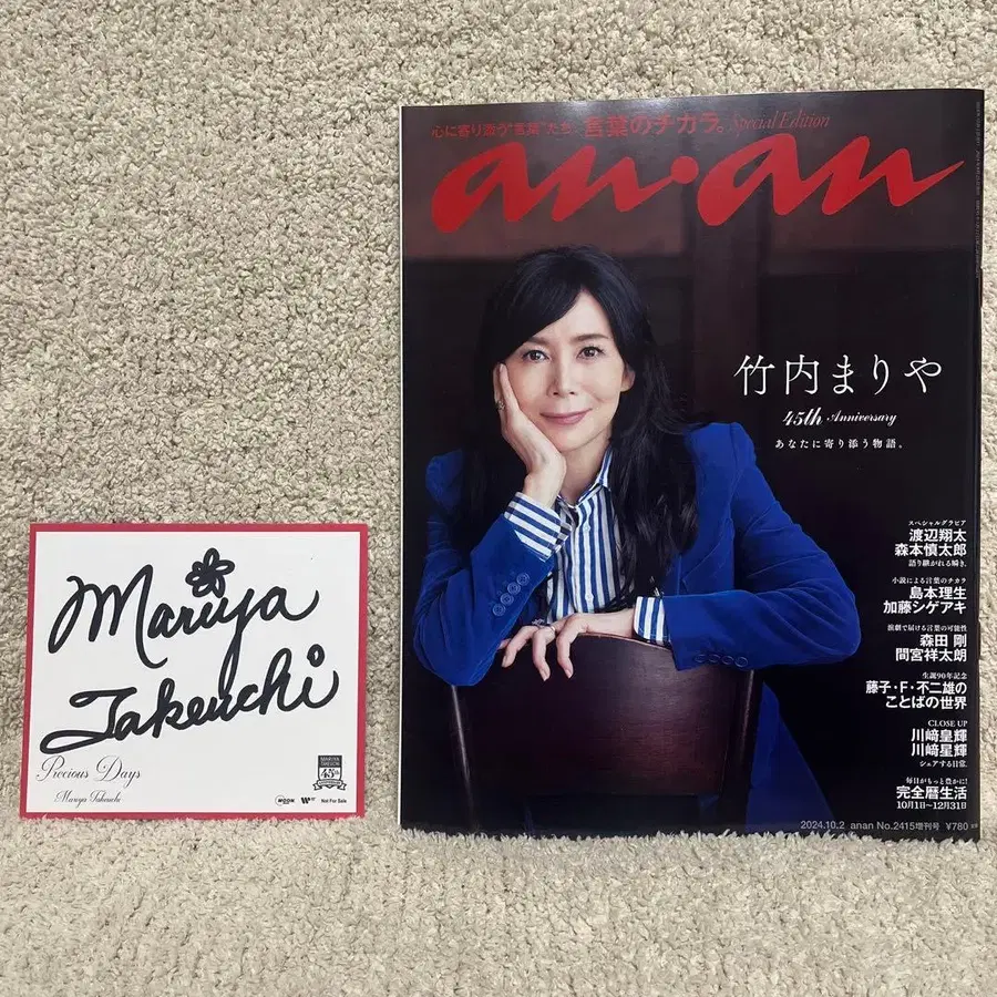 타케우치 마리야 친필 사인 an an 타케우치 마리야 45th Anniversary No.2415 증간호 권두 특집 자택 보관, 흡연자가 아닙니다. 방문해 주셔서 감사합니다.