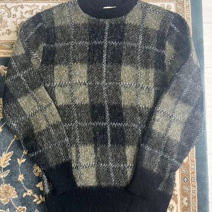 60s 크랜브룩 모헤어 니트 긴 털 체크 무늬 블랙 계열