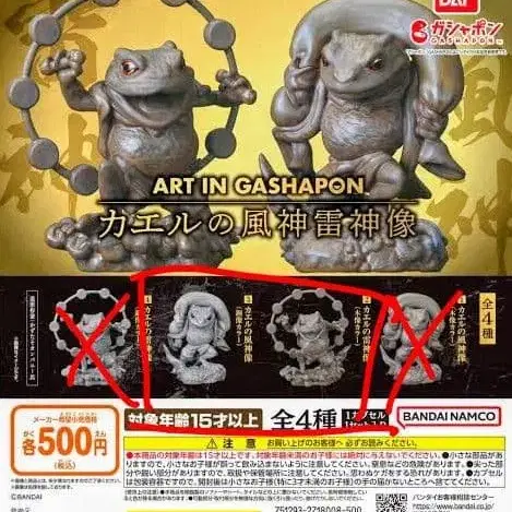 개구리 풍신뇌신상의 캡슐 토이, 총 4종 중 2종, 미개봉. - 브랜드: BANDAI - 시리즈명: ART IN GASHAPON - 캐릭터명: 개구리 풍신뇌신상 - 종류: 2종: 2 뇌신상(목상 컬러) + 3 풍신상(동상 컬러) - 상태: 미개봉 - 대상 연령: 15세 이상 방문해 주셔서 감사합니다.