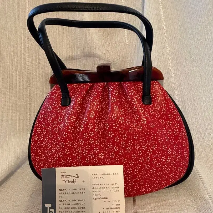 빨간색 꽃무늬 타타카프 소재 일본 의류용 백, 통통한 모양이 특징. - 색상: 빨간색 - 디자인: 꽃무늬 - 소재: 타타카프 - 브랜드명: 타토카프 - 핸들: 블랙 컬러 핸들 - 모양: 통통한 모양 방문해 주셔서 감사합니다.