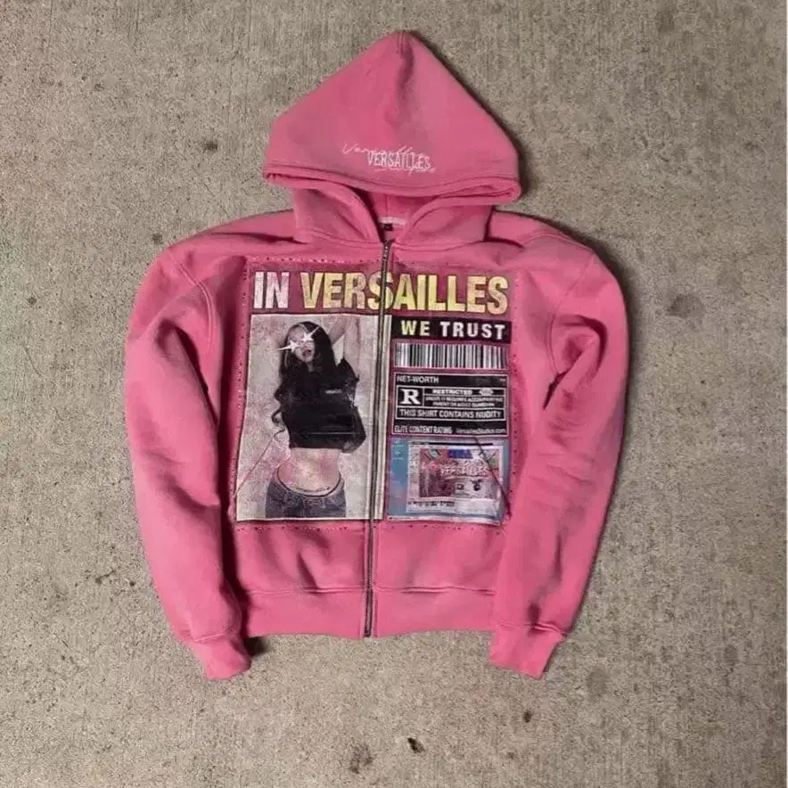 프론트에 유니크한 프린트가 들어간 핑크색 집업 후드티. - 색상: 핑크 - 디자인: 프론트에 프린트 있음 - 스타일: 집업 - 후드: 후드 부착 - 텍스트: IN VERSAILLES WE TRUST 기장 67cm 방문해 주셔서 감사합니다.