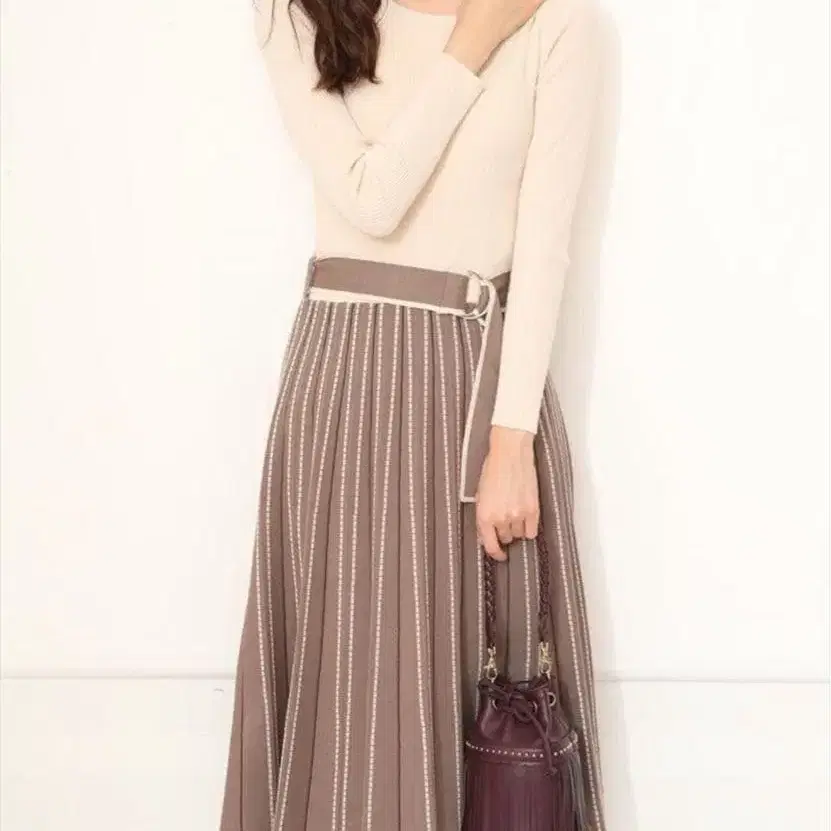 • 플레어 스커트 니트 원피스 크림색