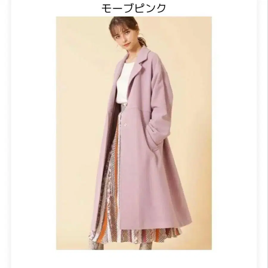 모브 핑크 색상의 노카라 롱 코트, 플리츠 디자인과 포켓이 있어 스타일리시합니다.