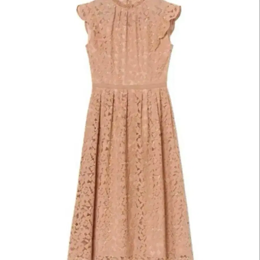 자동 번역되었어요. 원문보기레이스 디자인의 반팔 무릎 기장 원피스, 핑크색.