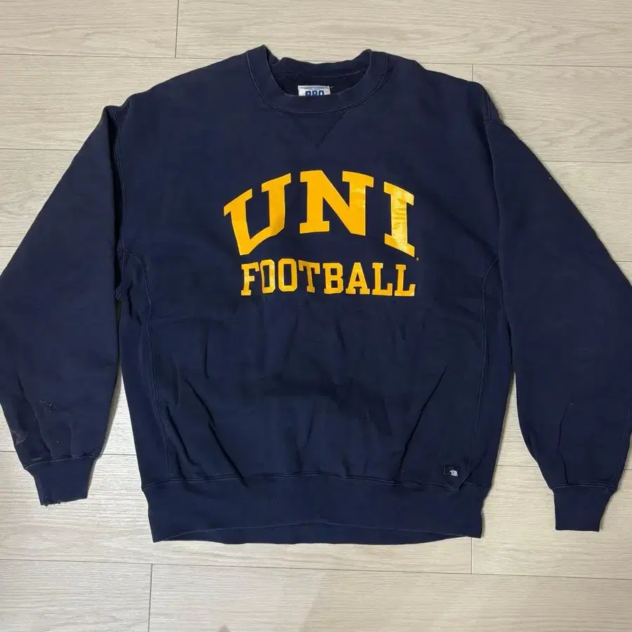 RUSSELL pro cotton의 칼리지 맨투맨입니다. 두께감이 있고 착용감이 매우 좋습니다. 컬러링도 매우 코디하기 쉽습니다. 사진 4번째 장을 보시면, 일부 색빠짐이 있지만 아직 충분히 입으실 수 있다고 생각합니다. 잘 부탁드립니다.