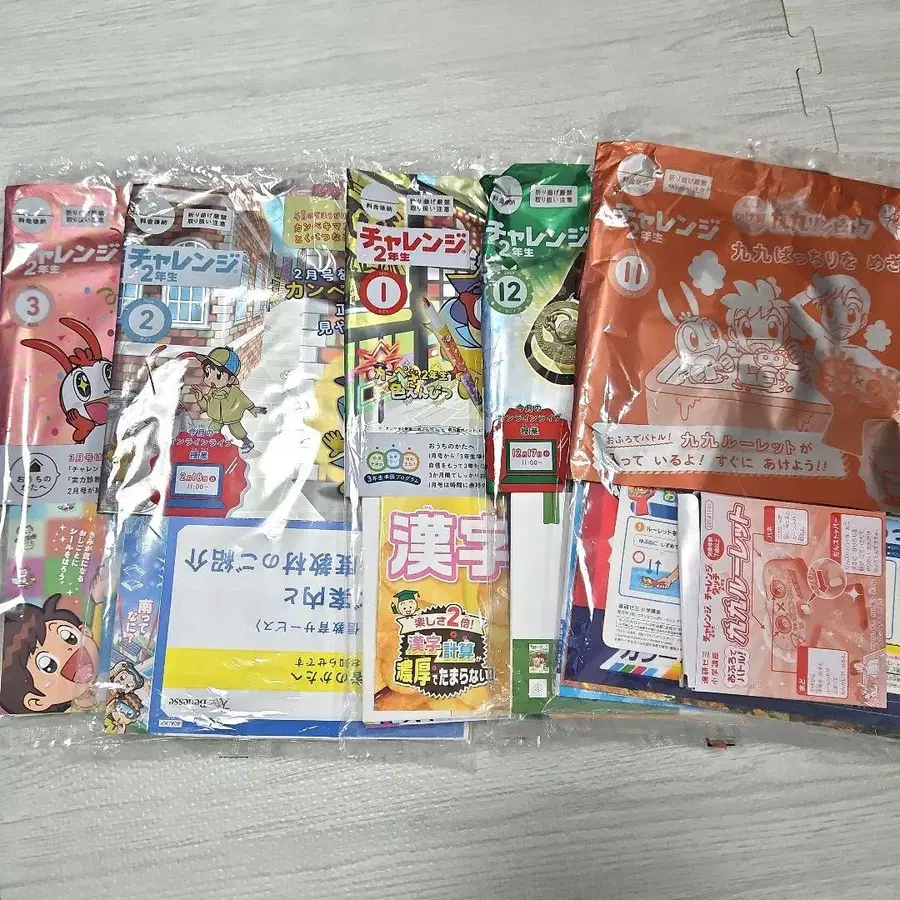 챌린지 2학년 11월호~3월호 세트입니다. 워크는 모두 미사용입니다. 1월호 색연필은 아쉽게도 아이가 가져가서 없지만, 11월호 구구 루렛은 미사용 상태로 들어있습니다. 그 외의 호차에는 원래 완구 부록이 없습니다. 미개봉인 것이 많았으나, 주소를 빼내기 위해 개봉했습니다. 중학교 수험으로 이어지는 워크도 함께 드립니다.