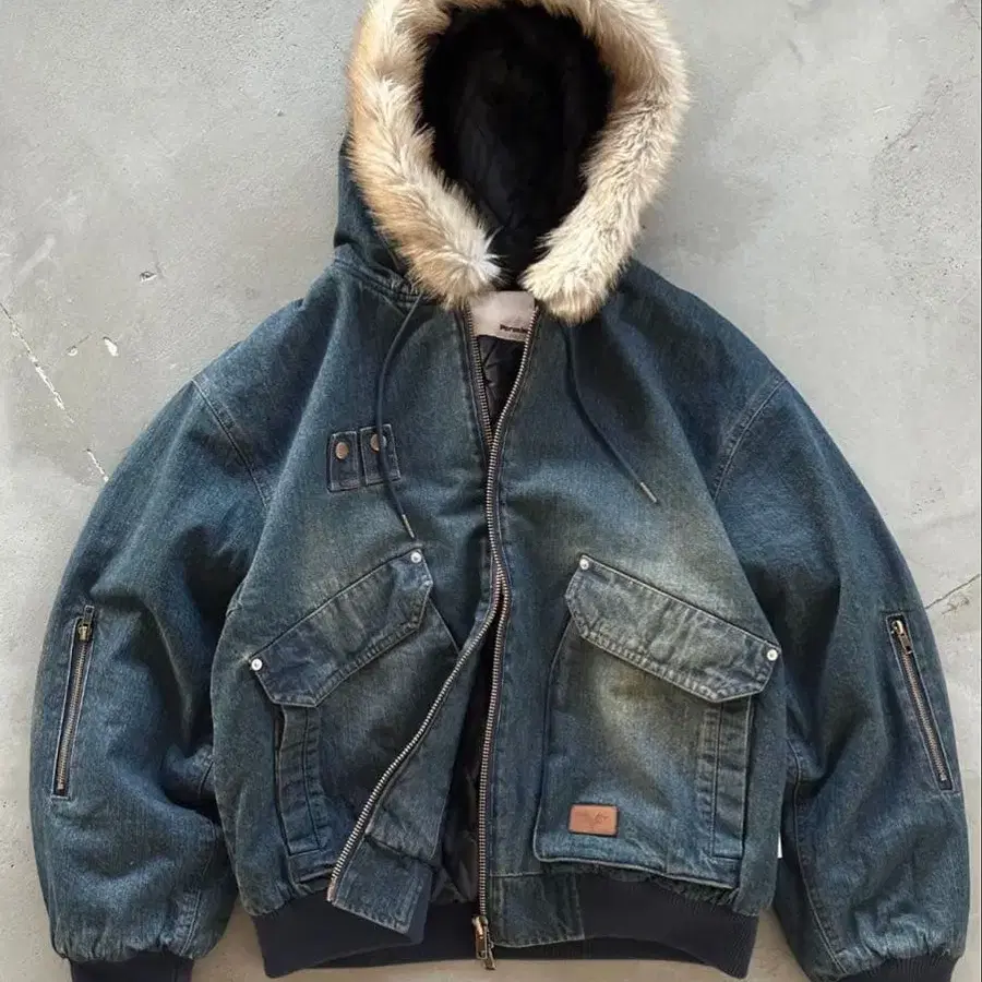 perushu 빈티지 데님 후드 퍼 블루종 L 사이즈