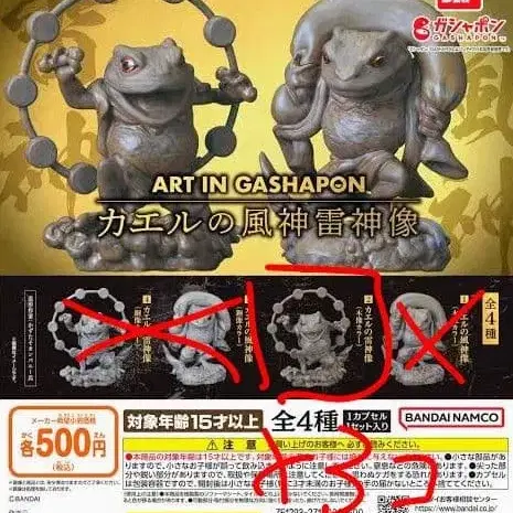 BANDAI의 캡슐 토이, ART IN GASHAPON 개구리 풍신뇌신상의 미개봉 세트. 총 4종 중 1종 x 3개 세트입니다. - 브랜드: BANDAI - 모델명: ART IN GASHAPON 개구리 풍신뇌신상 - 종류: 3개 풍신상 구리 동상 컬러 - 수량: 3개 - 상태: 미개봉 방문해 주셔서 감사합니다.
