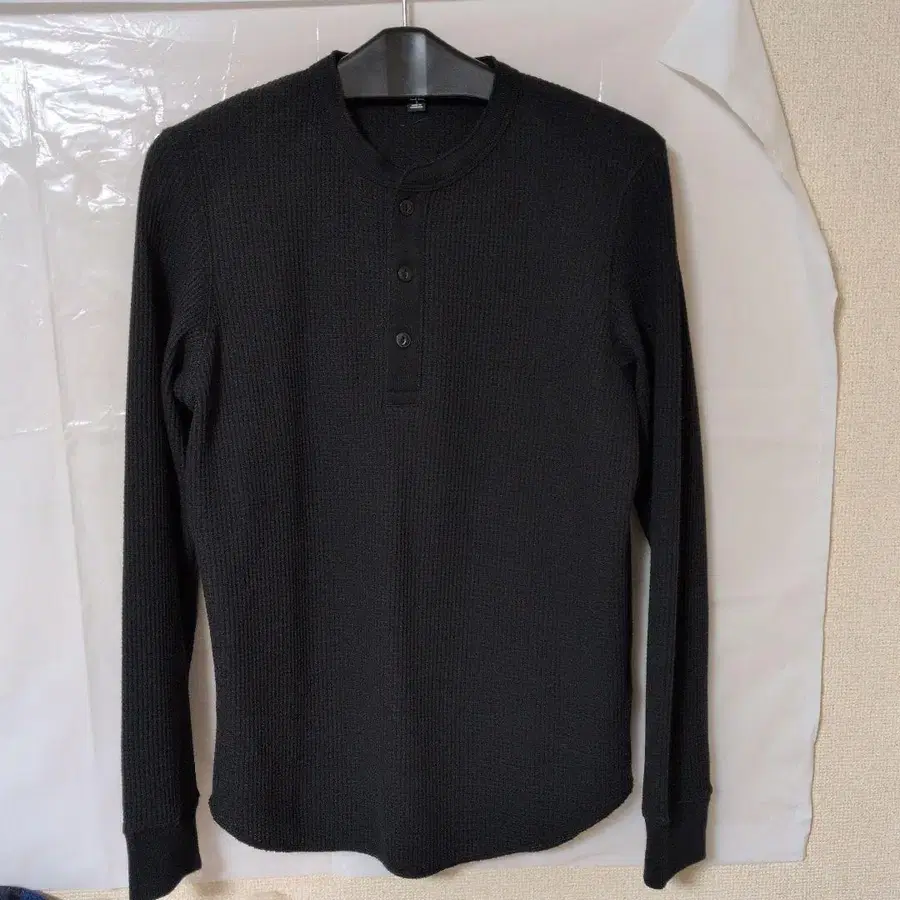 와플 원단의 블랙 헨리넥 긴팔 티셔츠. 유니클로 - 색상: 블랙 - 스타일: 헨리넥 - 소재: 와플 원단 - 소매 길이: 긴팔 방문해 주셔서 감사합니다.