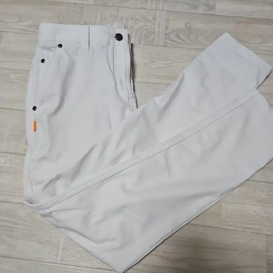 폴리에스테르 100% 슬림핏 화이트 팬츠, 사이드 포켓 포함. - 색상: 화이트 - 사이즈: M - 소재: 폴리에스테르 100% - 스타일: 슬림핏 - 포켓: 사이드 포켓 있음 겨울용으로 구매하여 1회 착용. 작년에 구매한 제품입니다.