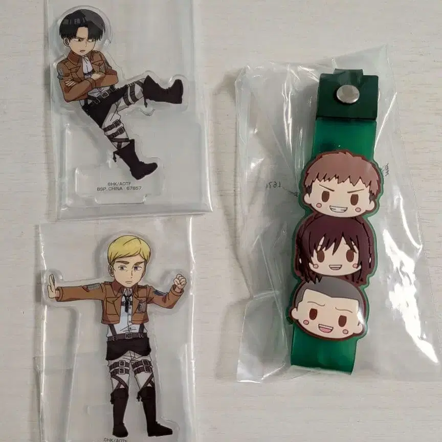 리바이 아크릴 스탠드 엘빈 아크릴 스탠드 장, 사샤, 코니의 포켓참 모두 외부 봉투는 개봉했지만, 내부 비닐은 개봉하지 않았습니다.