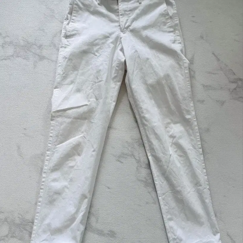 수년 전 SHIPS에서 구매한 화이트 치노 팬츠입니다. 여러 번 착용했지만 활용할 기회가 많지 않아 판매합니다. 상태는 좋지만, 화이트 팬츠이므로 희미하게 약간의 얼룩 등이 있습니다. [ 사이즈 ] (단위:cm) 허리 폭: 35 총길이: 90 밑위: 27.5 인심: 66 밑단 폭: 16.5