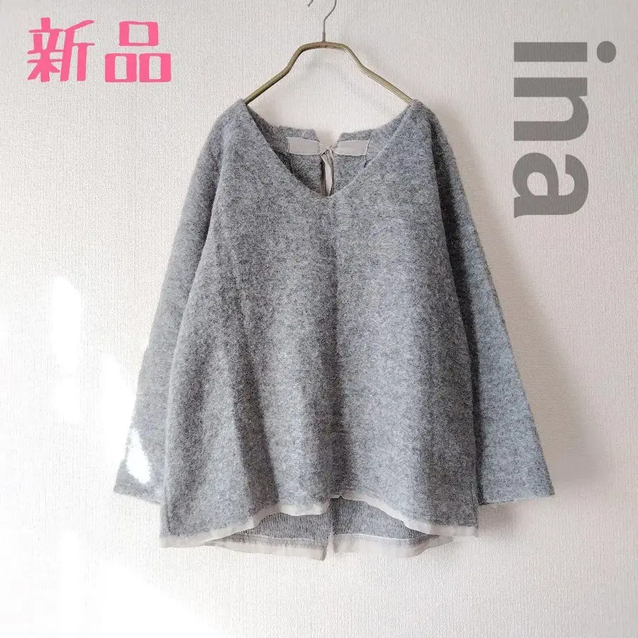 새상품 ina 이나 포근한 울 상의 루즈 리본 스웨터 그레이