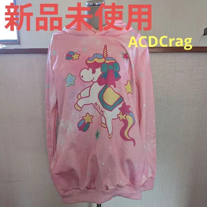 유니콘과 별의 귀여운 프린트가 들어간 핑크색 후드 부착 후드티.