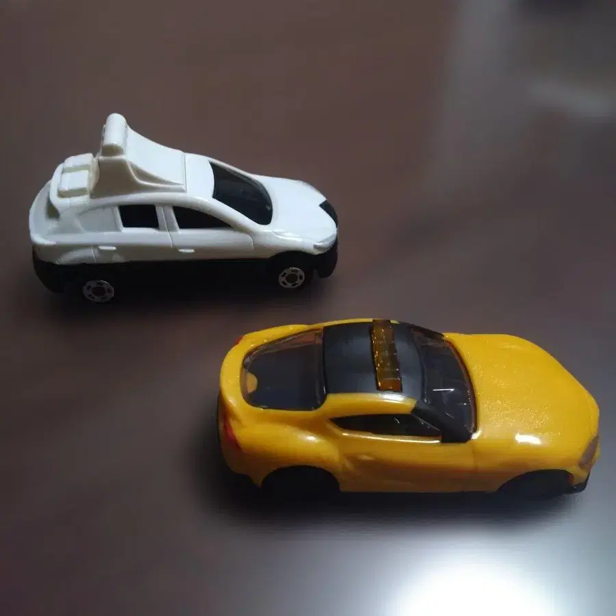자동 번역되었어요. 원문보기화이트와 옐로우 컬러의 미니카 세트입니다. 경찰차 디자인으로 지붕에 라이트가 달려 있습니다.
