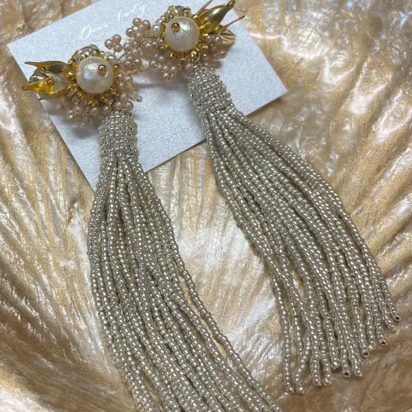 비즈 태슬의 비즈는 화이트 실버 색상입니다.