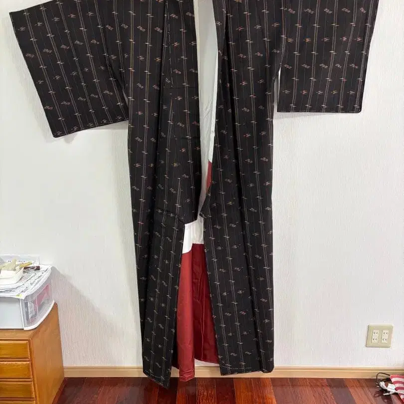 새상품급 시츠케츠키 워셔블 기모노 코몬 이중 기모노 풀잎 패턴 L사이즈