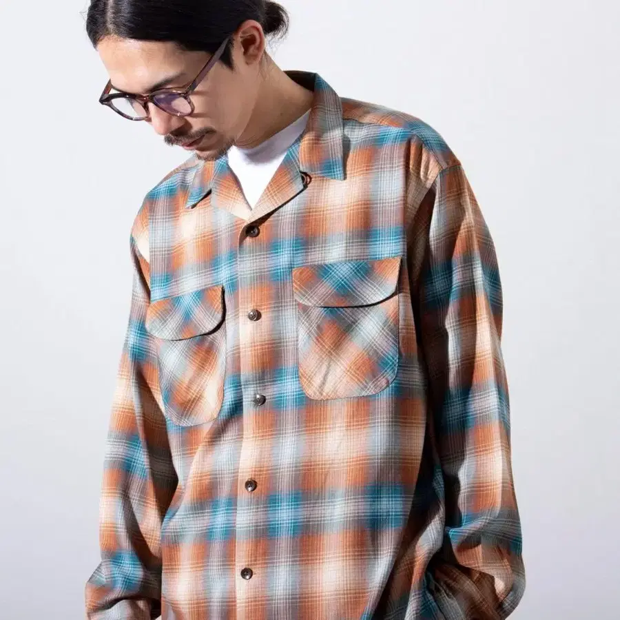 • 60s Game and Lake 옴브레 체크 울 셔츠 오픈 카라