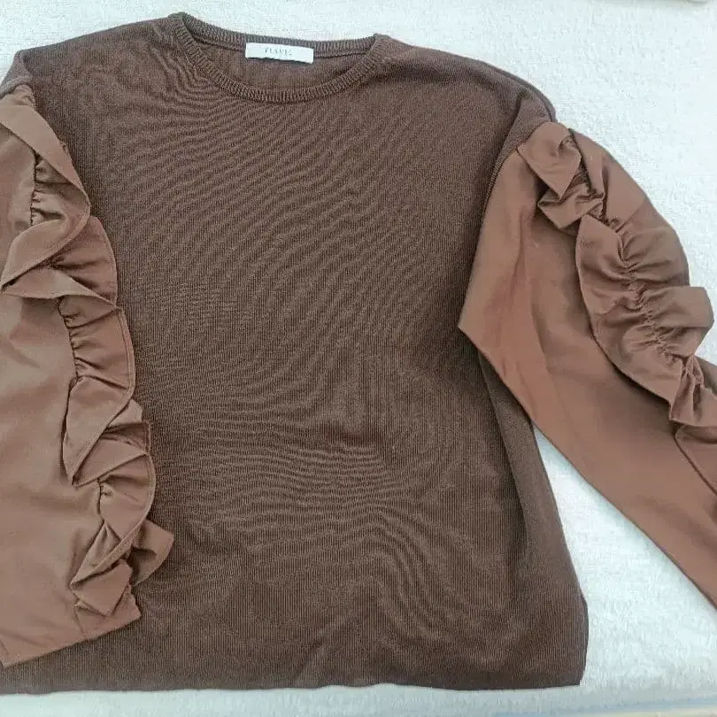 어깨부터 소매까지 이어지는 프릴이 포인트인 페넬의 이소재 긴팔 상의입니다. [ 사이즈 ] 9호 [ 브랜드 ] 페넬 FENNEL [ 색상 ] 코코아 [ 소재 ] 아크릴 60% 재생섬유(리요셀) 40% 겉감 부분 폴리에스테르 65% 레이온 35% [ 정가 ] 16,500엔 가슴 너비는 평평하게 놓았을 때 약 53cm입니다. 가격표 택은 입으려고 떼어버려서 없습니다.