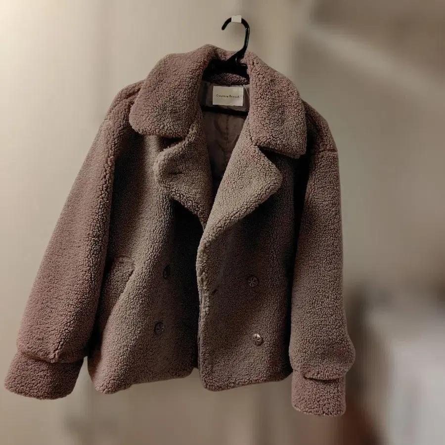 브라운 보아 자켓, 더블 브레스트 디자인으로 보온성과 스타일을 동시에 잡았습니다.