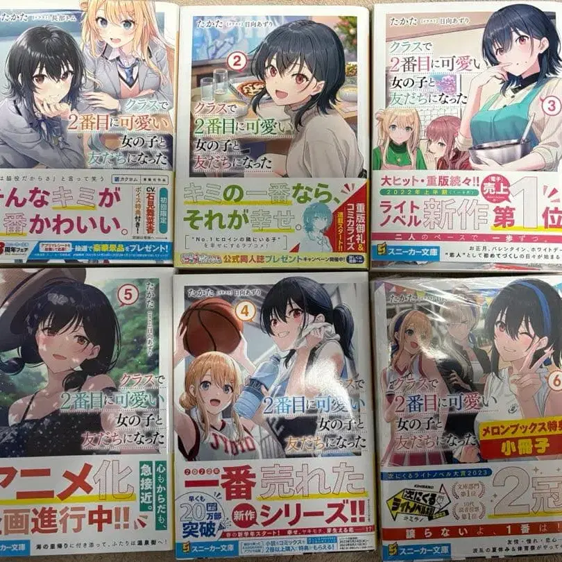 클래스에서 두 번째로 귀여운 여자아이와 친구가 되었다 소설 1~6권 세트입니다. 1~5권은 필름을 벗겼지만 상태는 깨끗합니다. 6권은 미사용 새상품입니다. 전권 초판입니다. 이사 정리 때문에 판매합니다. 가격 인하 협상 가능합니다.