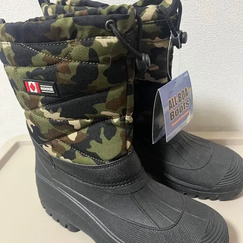 방수, 방한 사양의 카모플라쥬 디자인 장화.