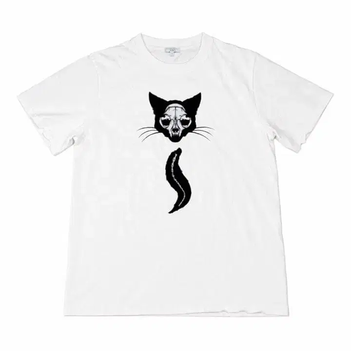 고양이 스컬의 유니크한 디자인의 화이트 T셔츠.