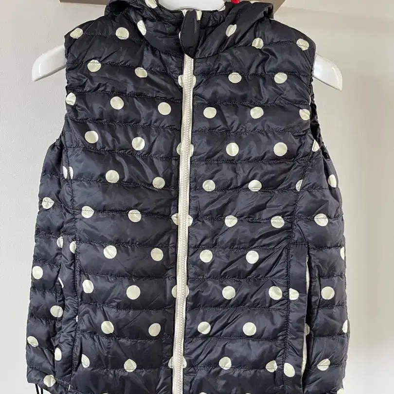 muveil work와 duvetica 콜라보 다운 베스트 도트 무늬가 귀여운 디자인입니다. 착용감이 적어 새상품급입니다. 사이즈는 40으로 S~M 상당이라고 생각합니다. 잘 부탁드립니다.