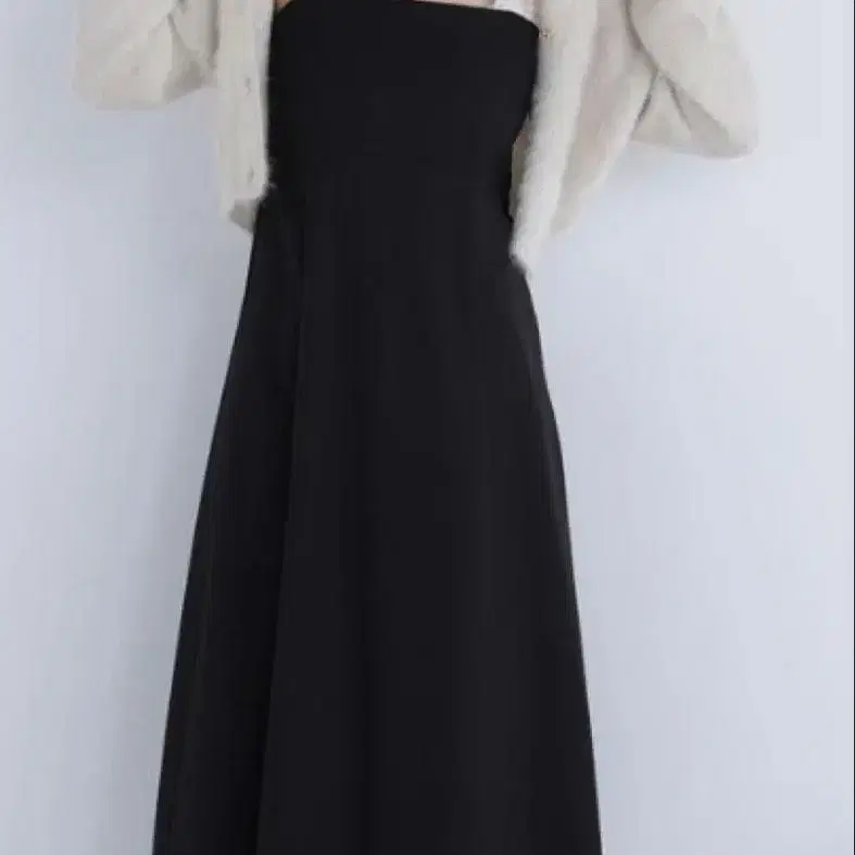 [ 시로미야 미즈호 콜라보 ] 프릴 숄더 점프 스커트 블랙