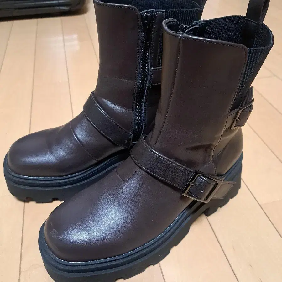 지퍼가 달린 브라운 통굽 숏부츠, 스트랩 디자인이 특징입니다. - 색상: 브라운 - 밑창: 통굽 7cm - 스타일: 숏부츠 LL 사이즈 방문해 주셔서 감사합니다. 올겨울 11월에 구매한 지 얼마 안 됐어요!!! 라이브에 신고 가고 싶어서 통굽 7cm를 구매했습니다. 저에게는 LL 사이즈가 너무 커서 사용 횟수 5회입니다! 안쪽에 지퍼가 있어 탈착이 쉬워요!!! 통굽이지만 가볍고 피로하지 않아요!!! 키다리 아저씨 상자에 넣어 발송합니다.