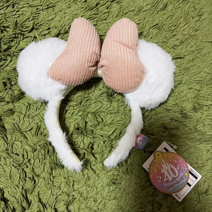화이트 인조 모피와 핑크 리본이 특징인 디즈니 프린세스 디자인의 머리띠.