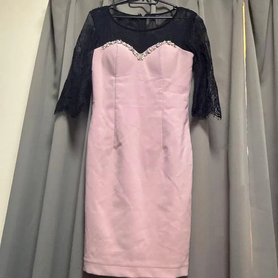 라벤더 타이트 드레스 레이스 소매 비쥬 포함