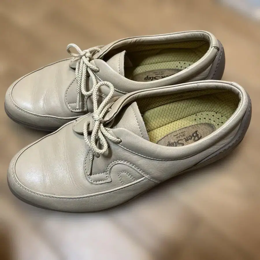 베이지 색상의 가죽 소재로, 쾌적한 착용감의 스니커즈입니다. - 브랜드: Bonsai - 색상: 베이지 - 소재: 가죽 - 밑창: 러버 방문해 주셔서 감사합니다. 사이즈 - 24.5cm 색상 - 베이지 계열 얼룩, 찢김, 냄새 등 - 없음