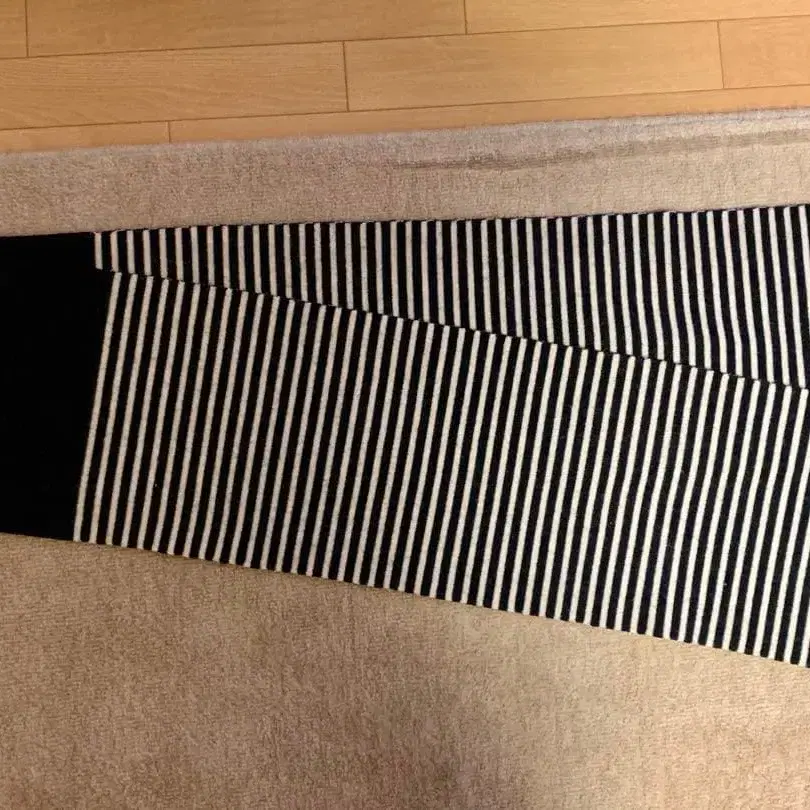 A.P.C의 머플러입니다. 사용하기 쉬운 배색이며, 보더 무늬로 목 부분의 포인트가 됩니다. 폭 약 22cm 길이 약 170cm 컬러 - 네이비 계열 패턴 디자인 - 보더 소재 - 울