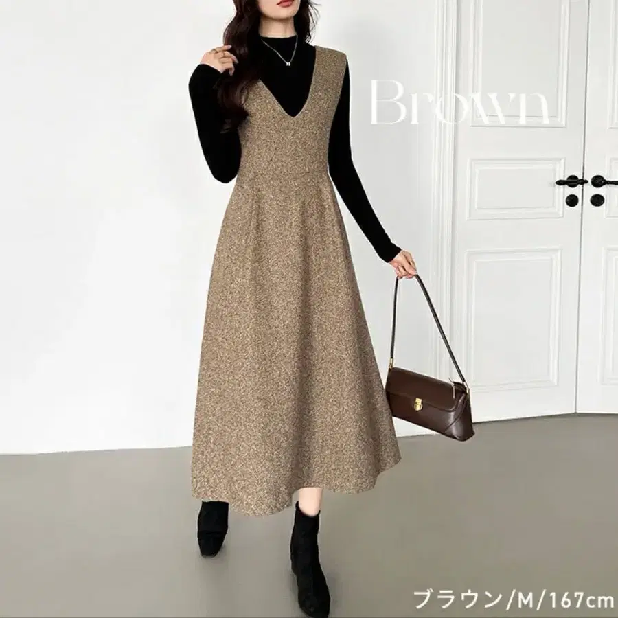 한 번만 착용했습니다. 스타일이 바뀌어서 판매합니다. [ 상품 설명 ] 깊은 V넥으로 연출하는 어른스러운 여유. V넥 오버롤 스커트. 앞뒤 깔끔한 깊은 V넥이 성숙함을 연출합니다. 백 스타일도 놓치지 않고 뒷모습까지 아름답게 보이게 하는 아이템. 플레어 실루엣이 움직일 때마다 가벼운 표정을 만들어 여성스러운 고급스러운 분위기로. 믹스 컬러의 차분한 색감은 오피스 캐주얼부터 데일리까지 다양한 장면에서 활약합니다. 레이어드에 따라 가을부터 봄까지 롱 시즌 대응 가능. 이너를 바꾸는 것만으로도 자유로운 어레인지가 가능합니다.