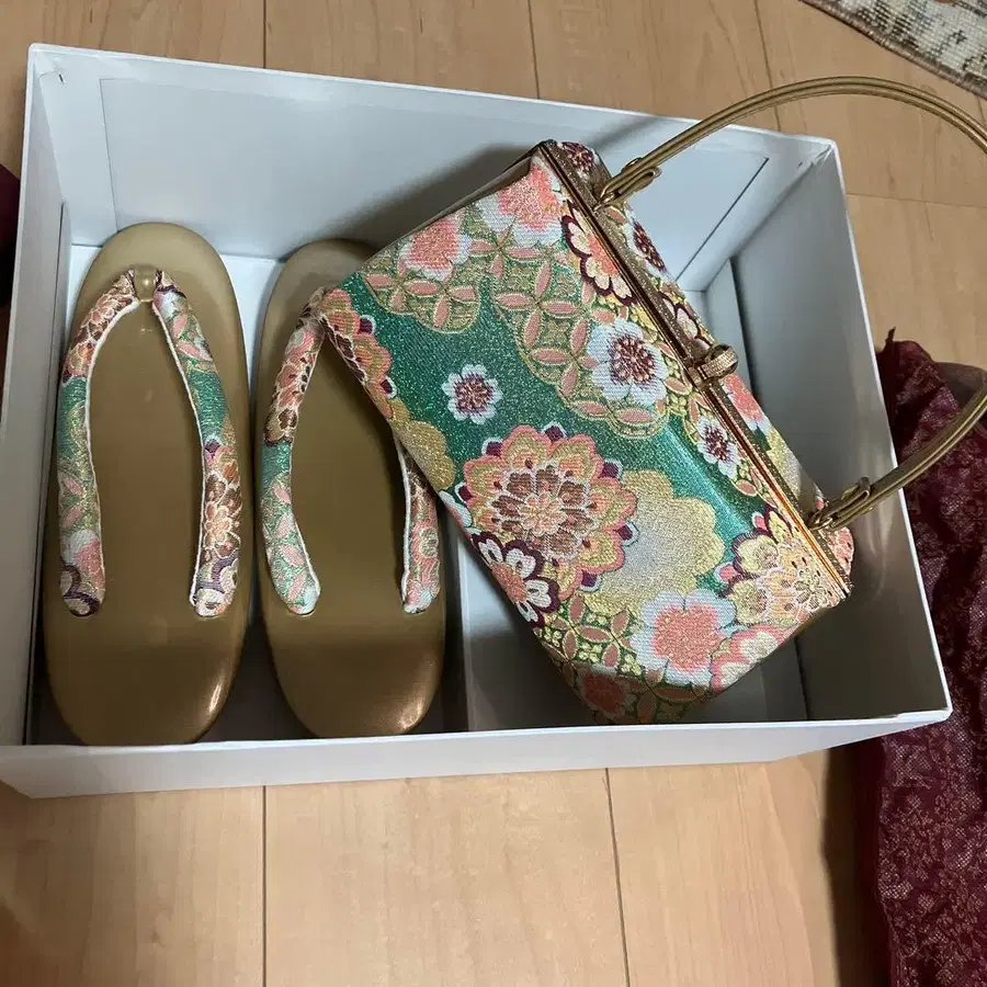 화려한 꽃무늬 디자인의 일본 의류용 백과 조리 세트.
