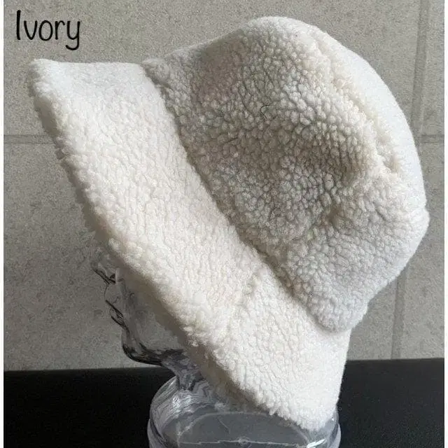 • 피쉬 본 칩스 버킷햇 인조 모피 겨울 블랙