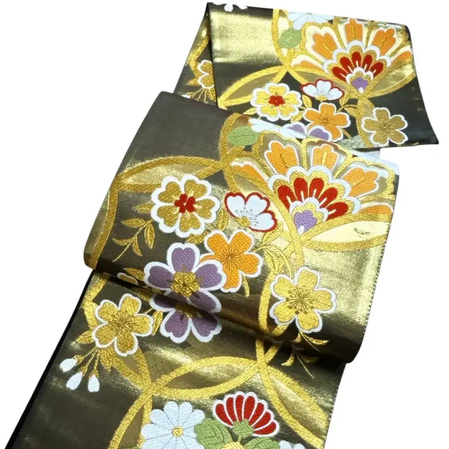 A 23 후쿠로 오비 육통 화문 무늬 당금직 꽃 순수 실크 후리소데용