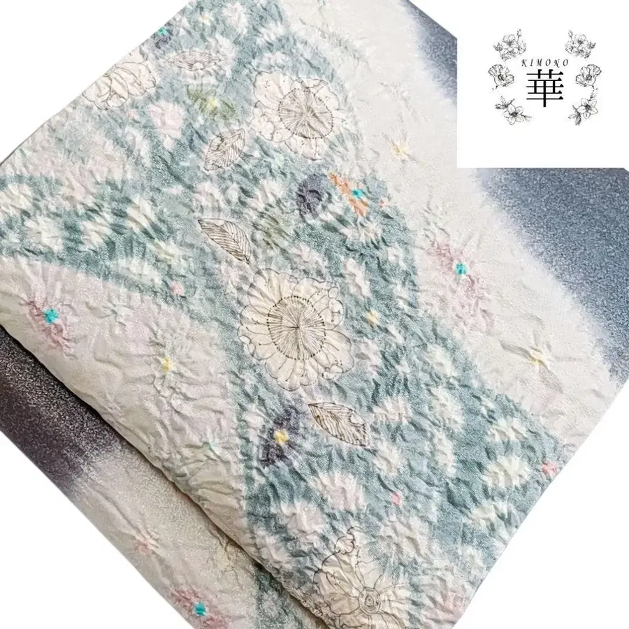 후리소데용 꽃무늬 자수 장식용 깃 화이트 컬러 블루 그레이 미사용 새상품