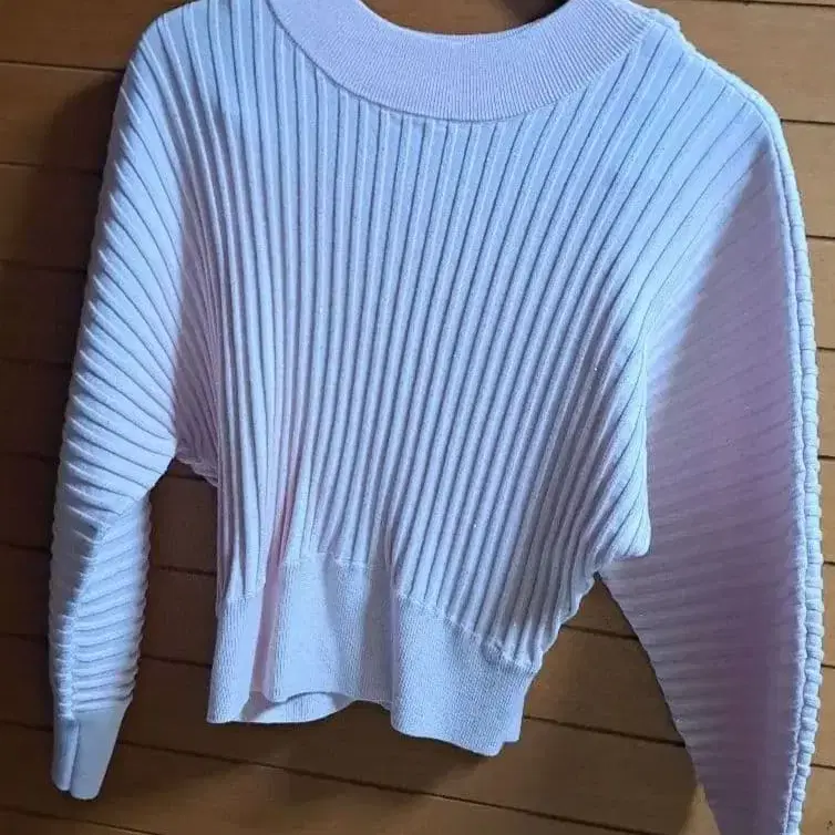 연한 핑크 짜임 무늬 긴팔 니트 스웨터