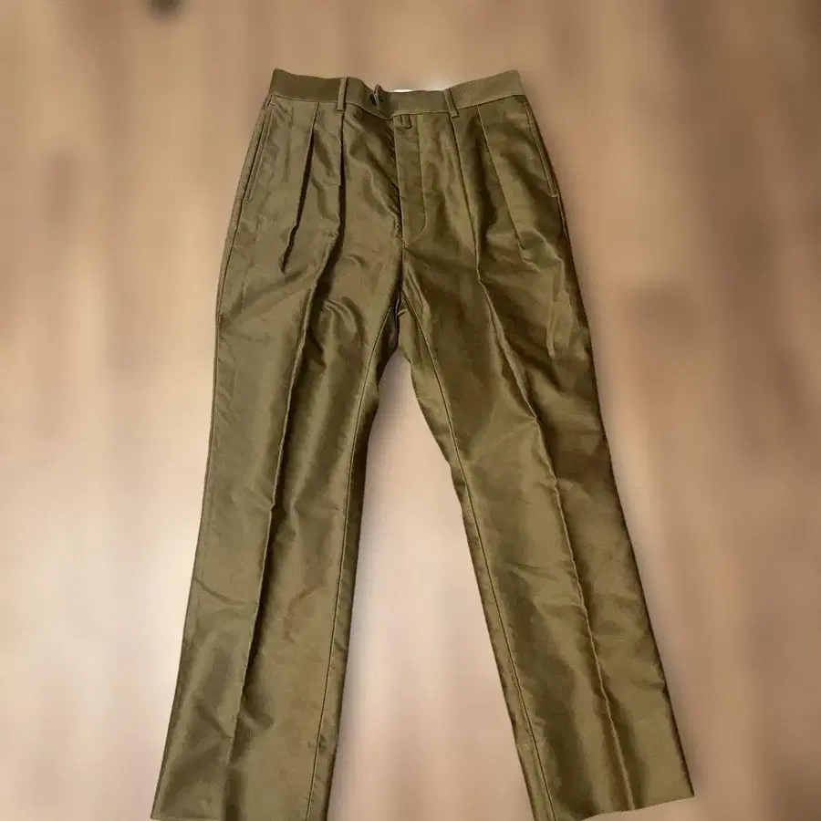 NEAT 울 와이드 2턱 슬랙스 그린 올리브