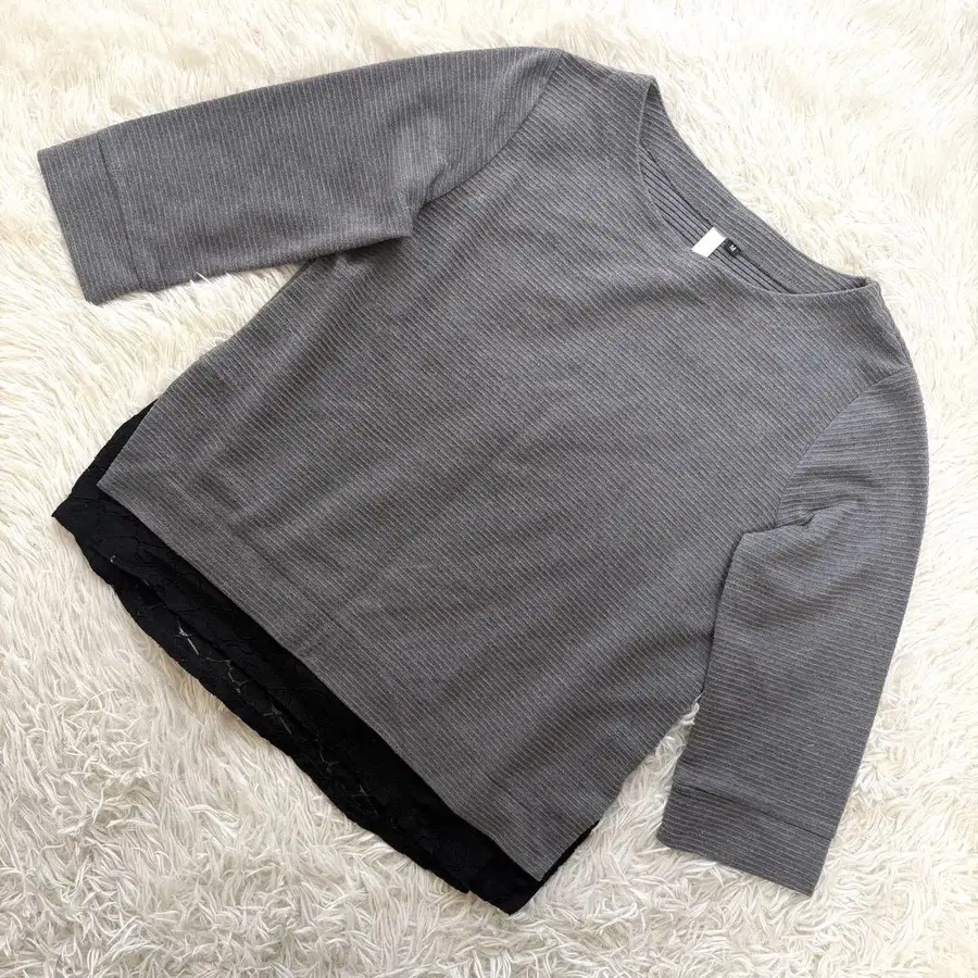 아쉬 이데알 [ M ] 7부 소매 티셔츠 밑단 레이스 리브 그레이 계열