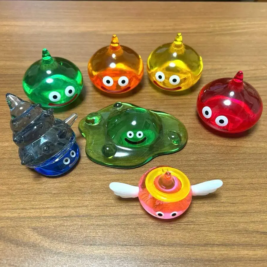드래곤 퀘스트 빅 클리어 피규어 컬렉션에서 슬라임과 엔젤 슬라임, 버블 슬라임, 마린 슬라임입니다.