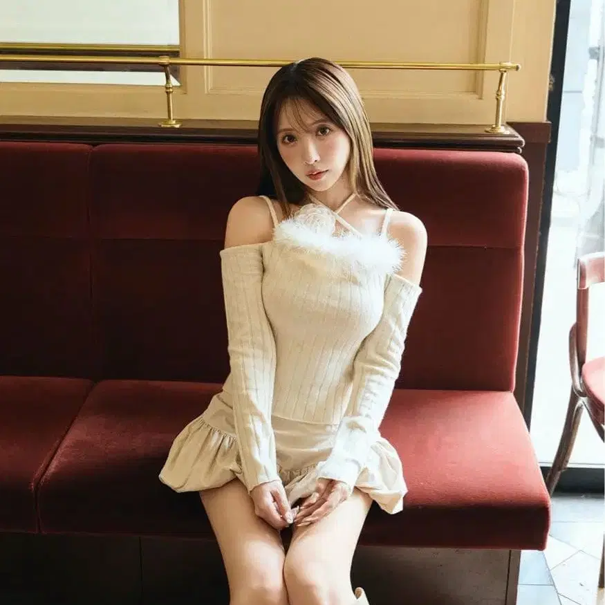 LIP SERVICE 라메 페더 오프숄더 니트 원피스