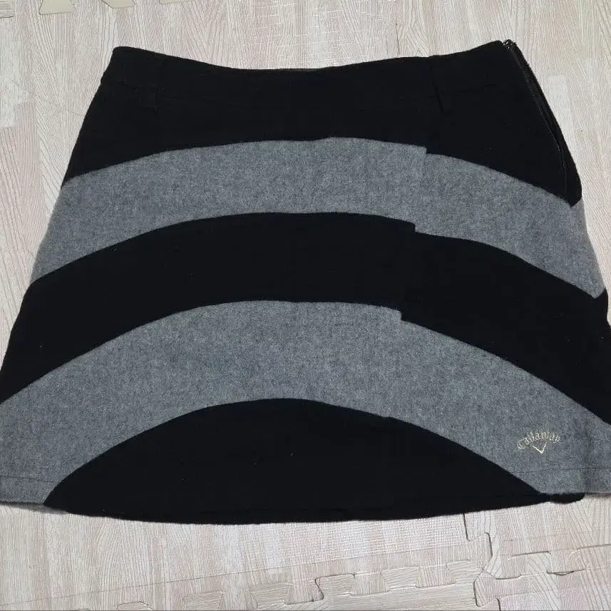 울 혼방 블랙과 그레이 스트라이프 스커트