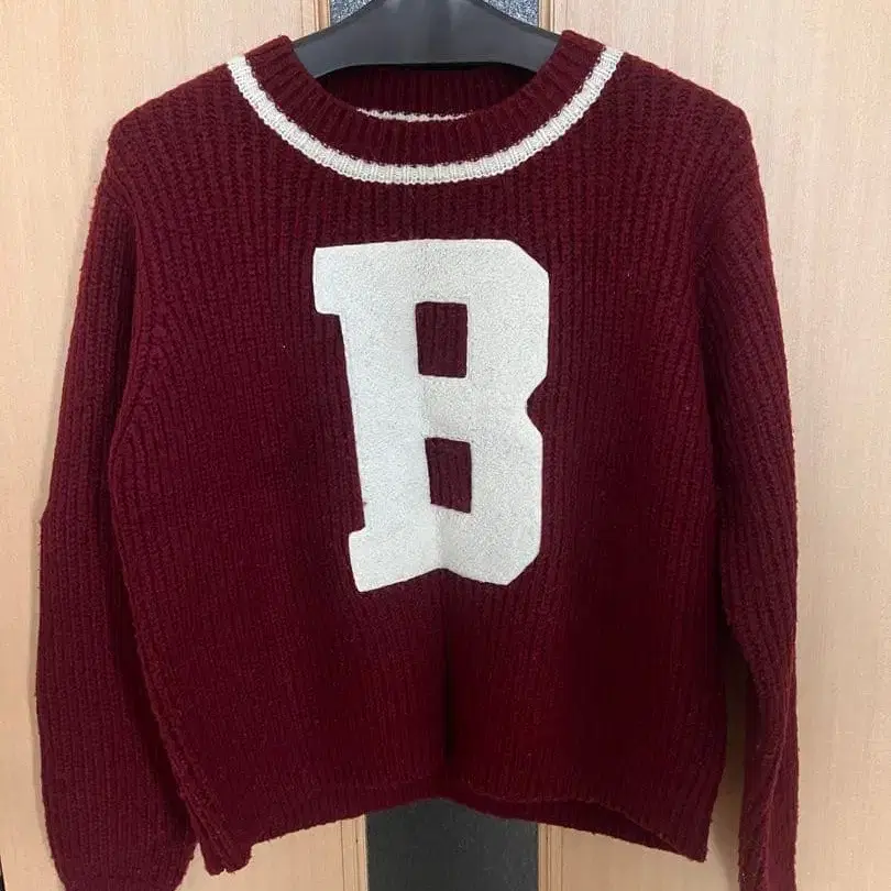 [ East Boy ] 버건디 B 자수 니트 스웨터