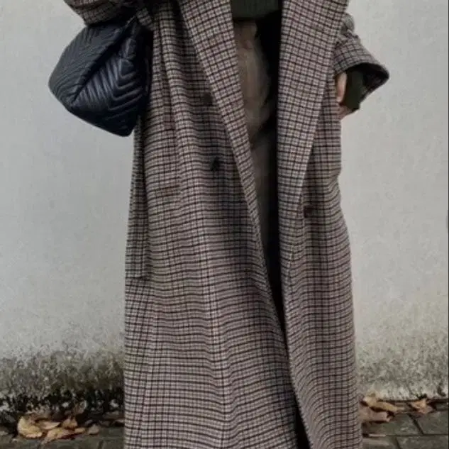 체크 무늬 롱 코트 그레이 계열