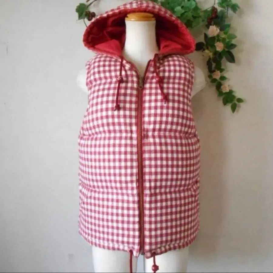 리버서블 디자인의 빨간색 다운 베스트, 깅엄 체크 후드 부착으로 스타일리시합니다. - 색상: 빨간색 - 디자인: 깅엄 체크 후드 부착 - 특징: 리버서블 베스트 - 로고: P 자수 방문해 주셔서 감사합니다. 사이즈 - FREE SIZE