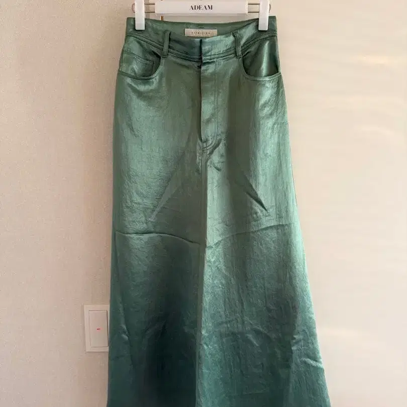 그린 새틴 롱 스커트